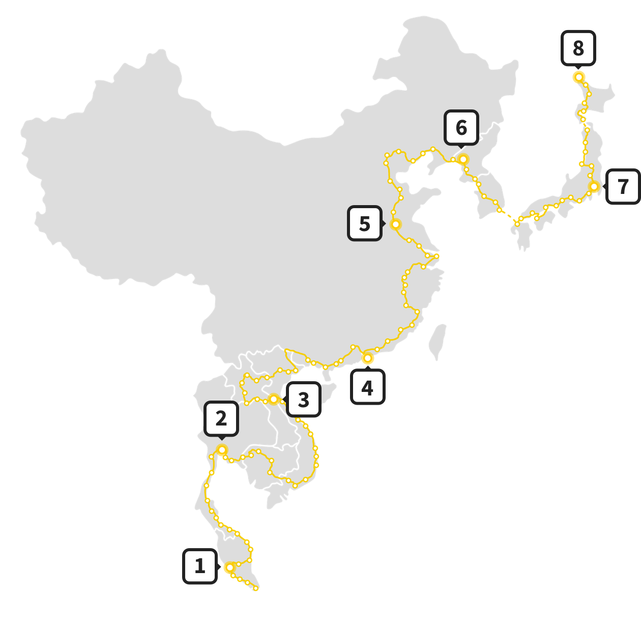Venturing into Asia for the first time with Run East Asia will see you virtually run or walk through 114 towns and cities across 10 countries for a distance of 15,730kms. This is definitely our most diverse map, with an enormous amount of variety in terms of culture, landscapes and history. Passing through centuries year old civilisations, UNESCO heritage listed attractions, traditional villages and the most populated cities on earth, this journey is one that will certainly get you out the door to reach more destinations to learn about this magnificent region.
