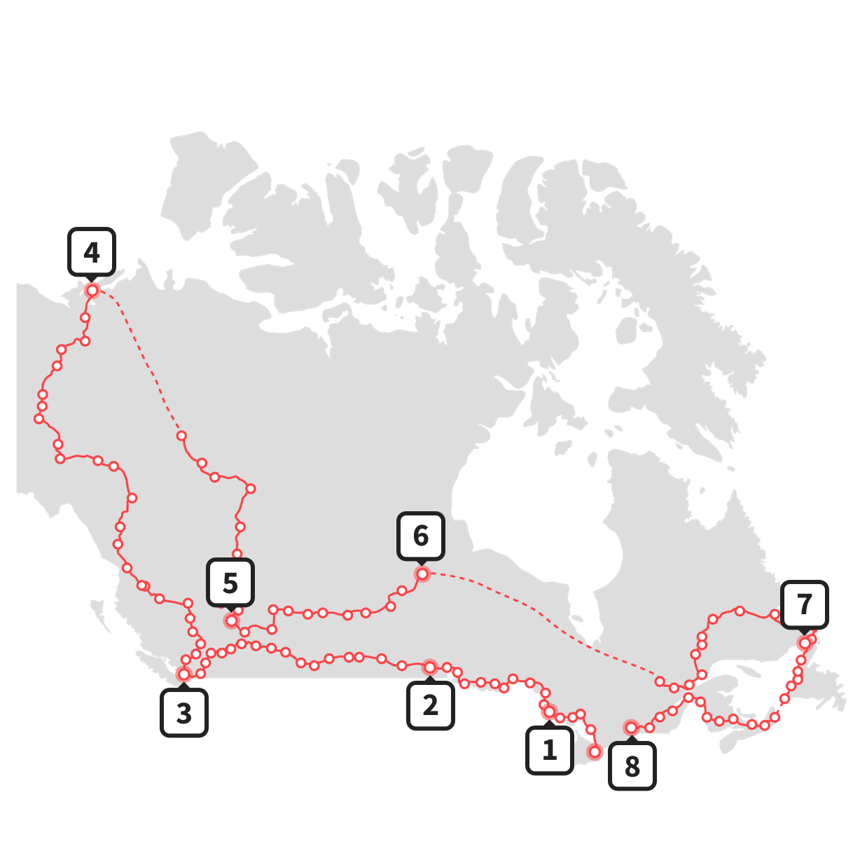 One of our newest maps, and one that explores this vast and diverse land by passing through 11 of the 13 provinces and territories that make up the world’s 2nd largest country. Your 16,390km journey will see you virtually pass through 112 towns and cities, each with their own piece of history and beauty. Finishing in the Capital city of Ottawa will be your reward for years of dedication and commitment to Run The Great White North.